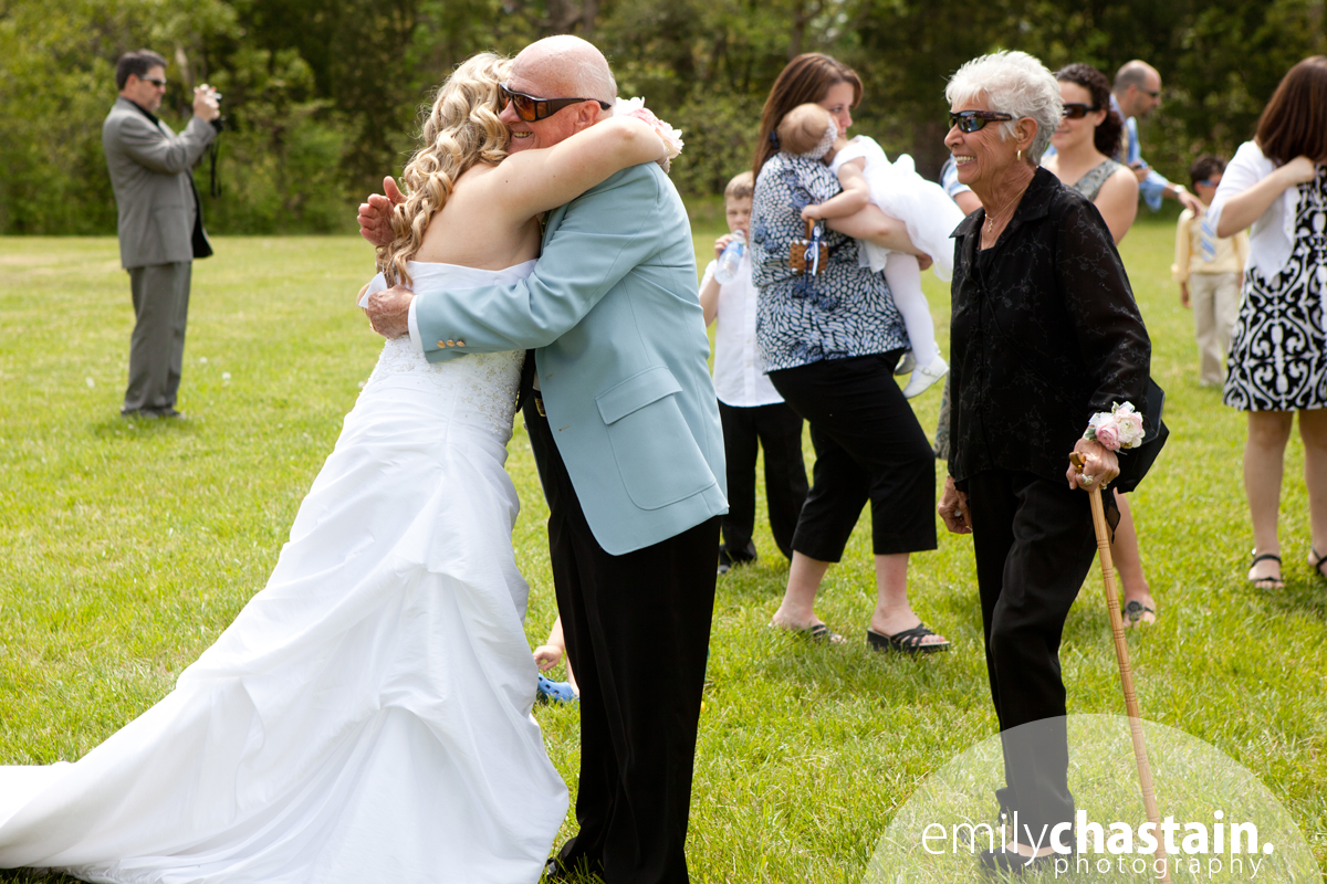 I’ve been looking forward to Holly and Jason’s wedding ever since I shot their engagement photos last year. They are such warm and genuine people and I loved them immediately. Holly looked so beautiful the day of the wedding – I still can’t get over her hair!! Their midday wedding ceremony took place in a field overlooking the water at Jefferson Patterson Park and the reception was in this awesome open-air pavilion/barn thing, which was the perfect location for their “lucky in love” themed wedding. Holly and Jason have known each other since middle school, and dated for over ten years!