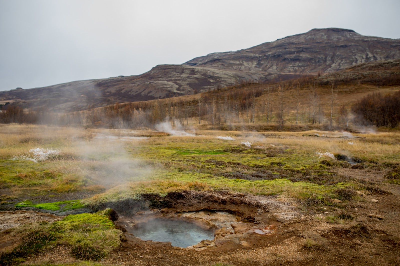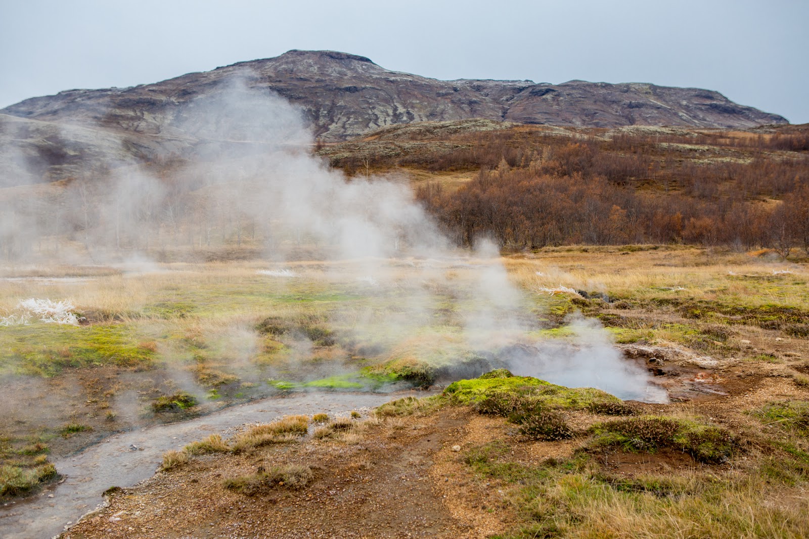 Iceland is known for all its geothermal energy and hot springs, and if you look closely, you can see steam rising from a few different places in this picture. Which is a totally normal thing in Iceland. Just crazy little steam pockets dotting the landscape. Iceland is also the only country where people have water coolers instead of water heaters.