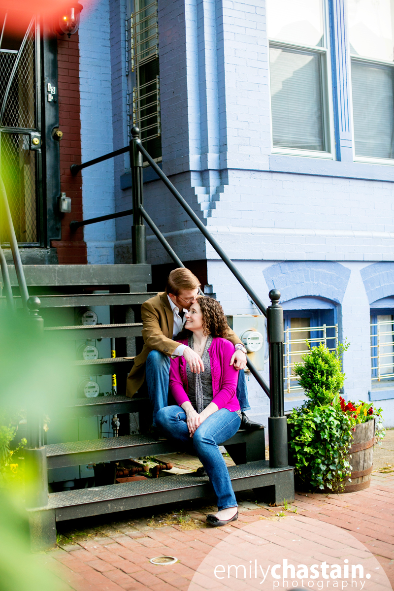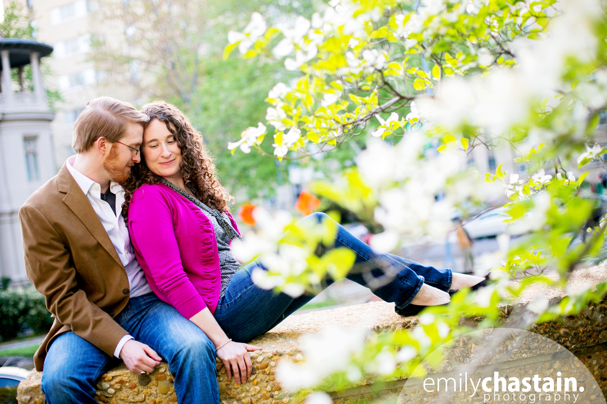 I met Kim and Matt at Meridian Hill Park, where we blamed the government and its budget cuts for not having the water running in the totally awesome fountains there. That issue aside, we found some great spots around the park. The sun and the plants/flowers/trees blooming everywhere made it feel like spring, despite the less-than-60-degree day. We then headed down U Street to Matt’s neck of the woods, bonding over a mutual love of cheap tacos along the way. Kim and Matt like to laugh, and I can’t wait to laugh in happiness with them at their wedding!